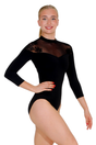 - Elegant ¾ sleeve leotard with a refined, high neck design