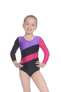 Ce justaucorps à manches longues est en nylon/lycra avec les jambes échancrées et élastiquées. Un style surprenant pour ce justaucorps tricolore, idéal pour la gymnastique.
