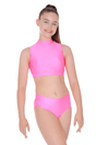Crop top de danse sans manches avec col montant - RVTCROP. Disponible en 4 coloris, il est fabriqué dans un tissu nylon Lycra de haute qualité. Avec une fermeture à agrafes et une découpe en trou de serrure derriére, cette piéce pour les femmes et les ados représente le bon choix pour les performances ainsi que les cours de danse.