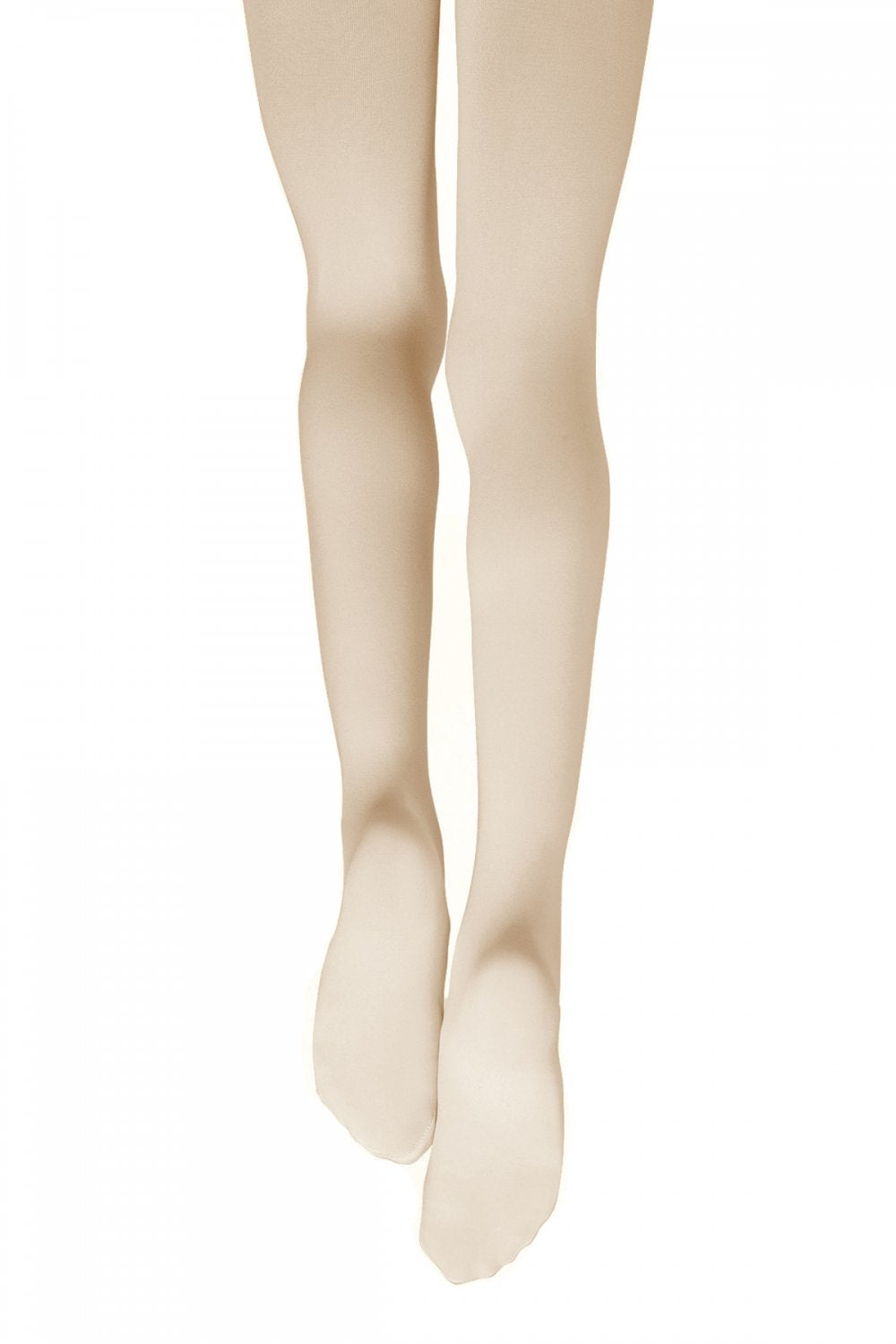 Collants essentiels Capezio V1882. Collants semi-opaques avec pieds dotés d'une ceinture douce et sans élastique pour un look lisse et pur. Fantastique pour la pratique de la barre de ballet, le V1882 est disponible dans un rose délicat et est fabriqué à partir de 88 % de nylon et 12 % de lycra.
