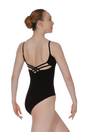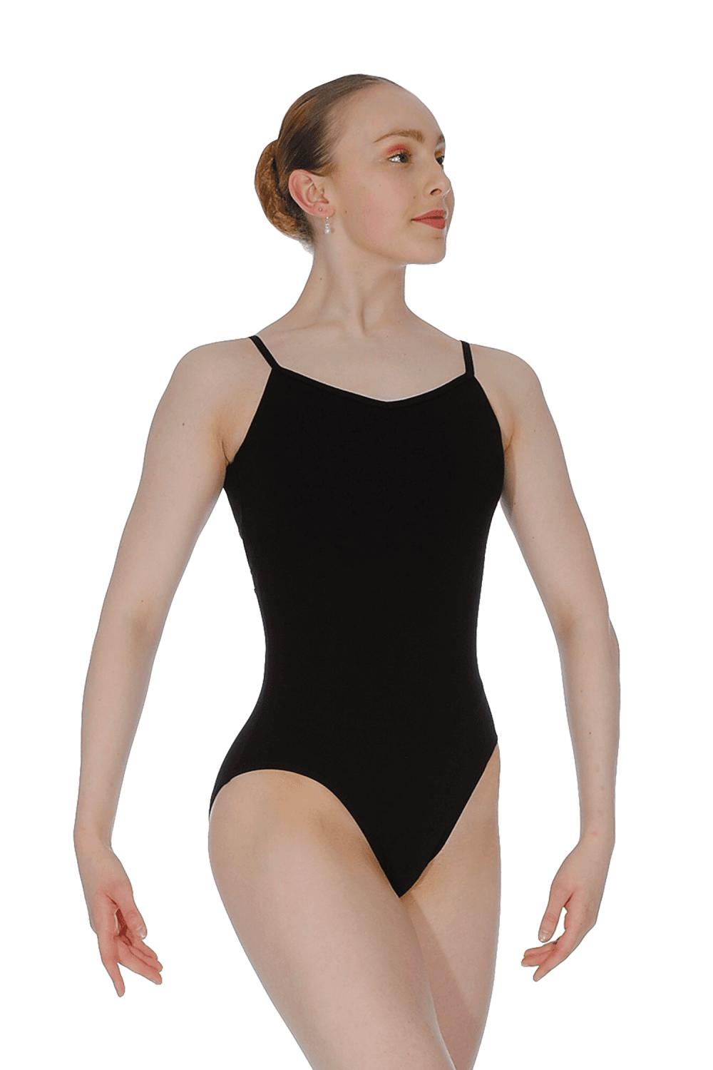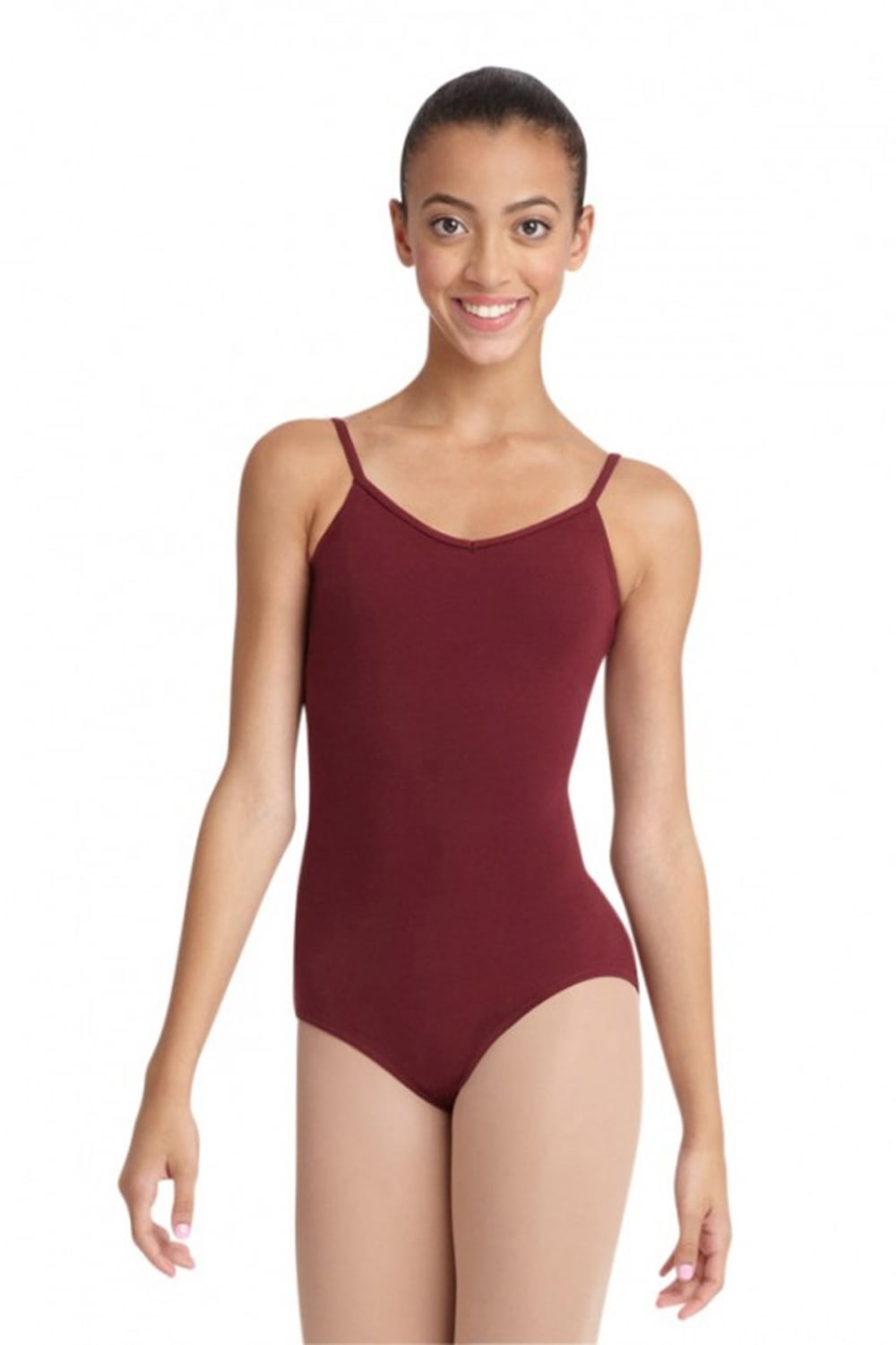 Le justaucorps CC102 de Capezio a un col en V, des fines bretelles sur le devant et un dos à bretelles. Le justaucorps est doublé sur la poitrine. En 90% coton et 10% lycra