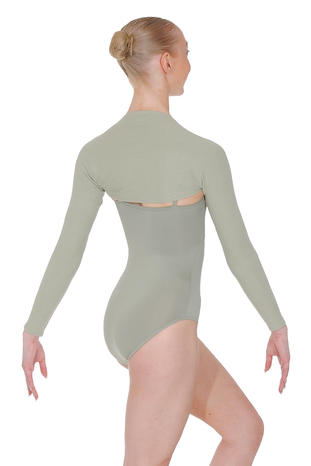 Le boléro Inesse de la marque ukrainienne Grand Prix® est disponible dans 3 choix de couleurs : pistache, corail et moka. Avec ses longues manches et son style ouvert, il est idéal pour les répétitions ou pour les cours de danse.