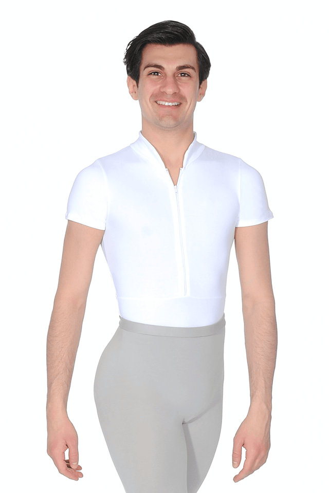 The Endo men's/boys' short sleeve leotard from Ballet Rosa. Think Rudolf Nureyev and Carlos Acosta in this fantastic high neck leotard. Featuring a zip front opening, it is ideal for ballet, acro and contemporary classes and performances alike. Worn with Ballet Rosa Ryo Men's Tights.