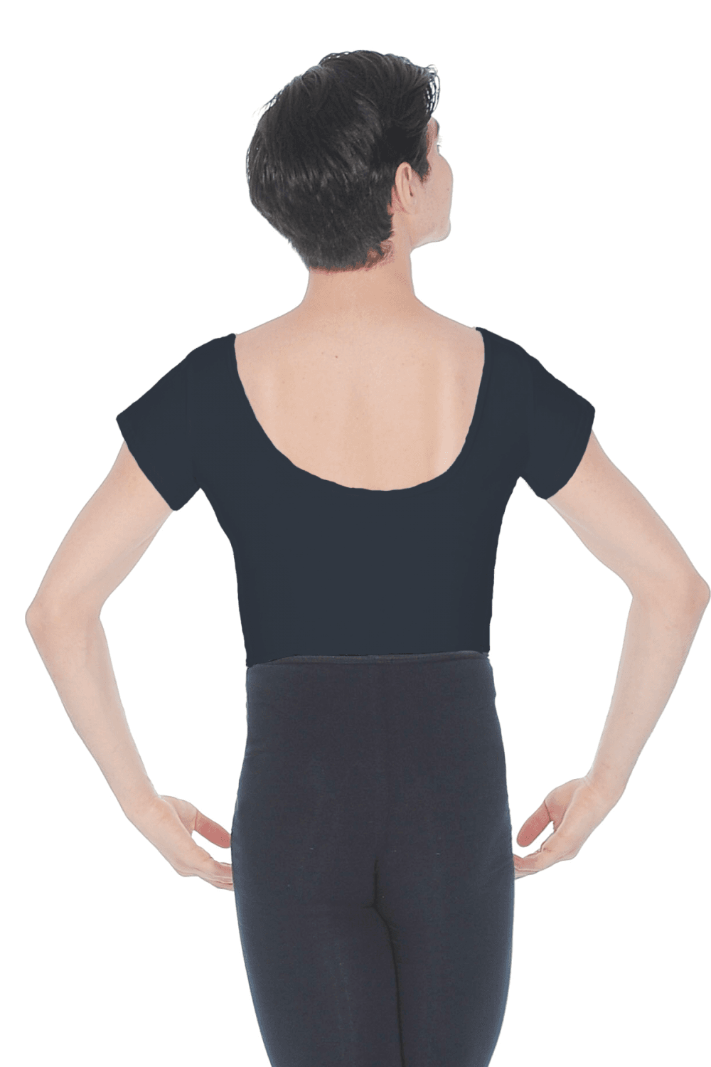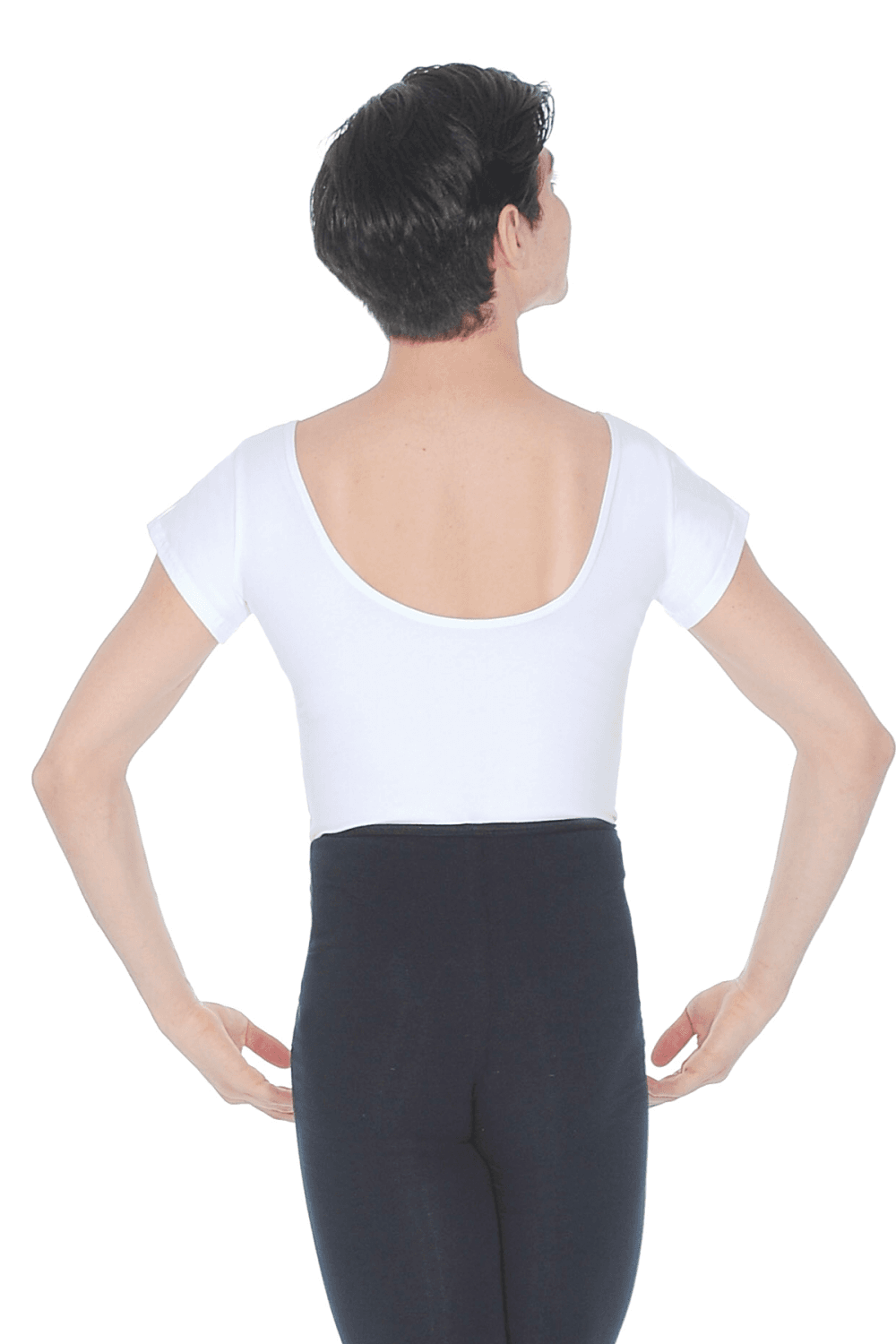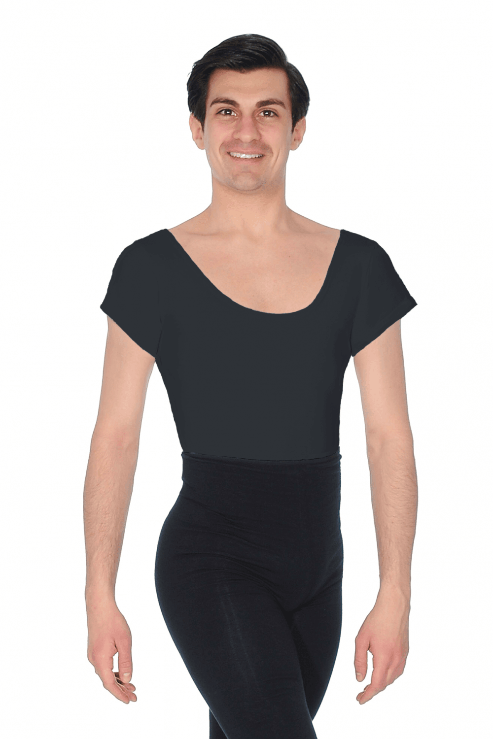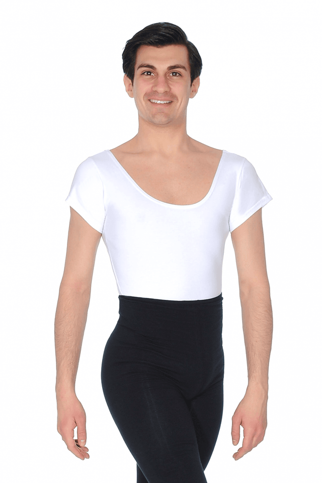 700 T-shirt sleeve leotard from Dansez. Made in exclusive Cotton/Poly/Lycra fabric, this version features a full bottom. Available in classic White or striking Black, the 700 men's leotard is suitable for any dance class and can also match a wide variety of dance garments.