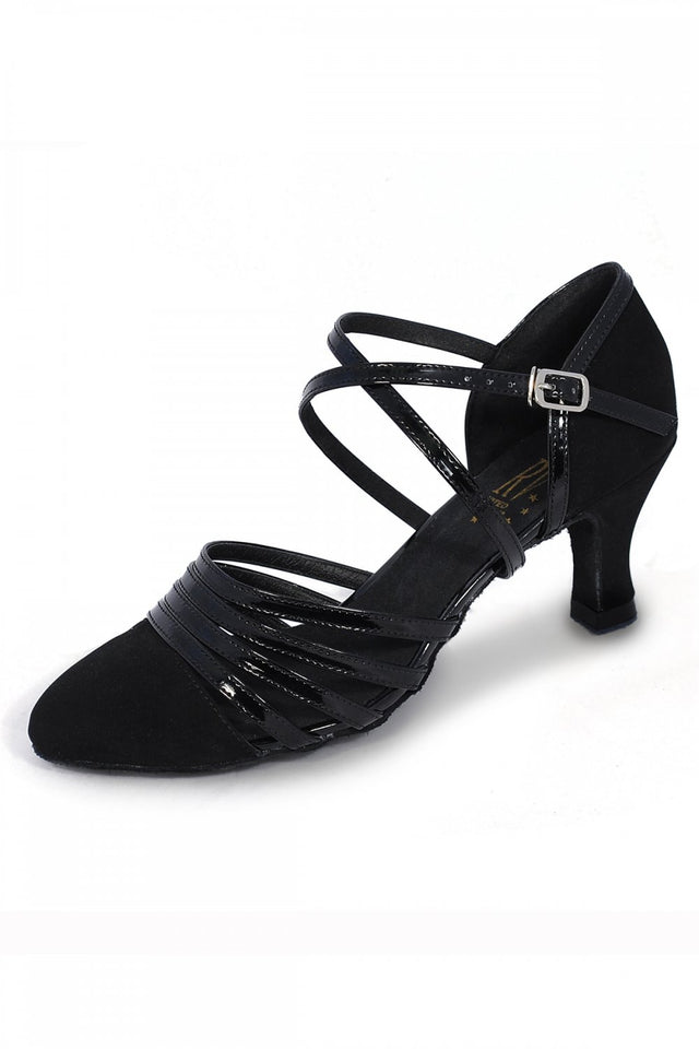 The RV810 ladies' closed toe ballroom shoes from Roch Valley. These classic ballroom shoes complement your footwork and accentuate your movements, with a lovely 2.5" heel. Featuring patent straps across the vamp, patent trimmings, and a patent cross-over strap, the RV810 ballroom shoes are a sophisticated style.