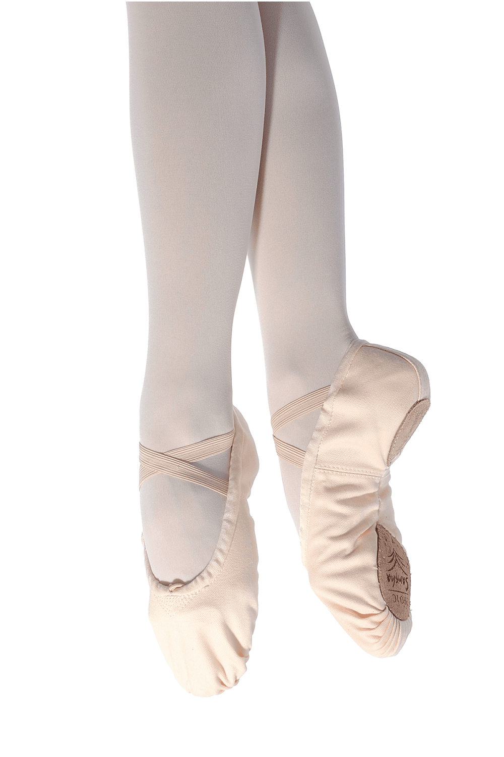 1C Pro Canvas Split Sole by Sansha. Sansha's original split sole soft ballet shoe has a double layer of canvas for durability, hand stitched suede soles with foam padding to the heel for protection and comfort, and pre-sewn cross-over elastics to ensure a secure fit. Expertly designed, the 1C allows supreme balance and improved weight distribution whilst on demi pointe.