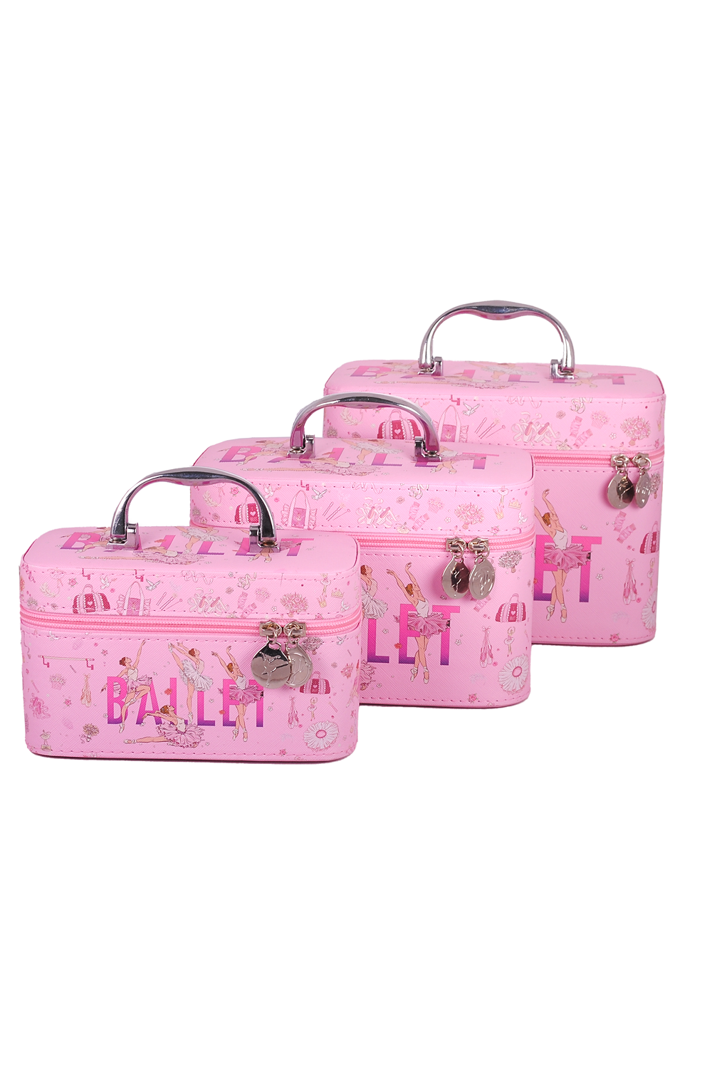 Wow!! This is the perfect gift for any budding ballerina. A set of 3 vanity cases that perfectly nest within each other. Each features a mirror within the lid, soft bright pink lining and is fastened by zip. Can be used to store hair accessories, jewellery, stationary, stage make-up .... the possibilities are endless.
