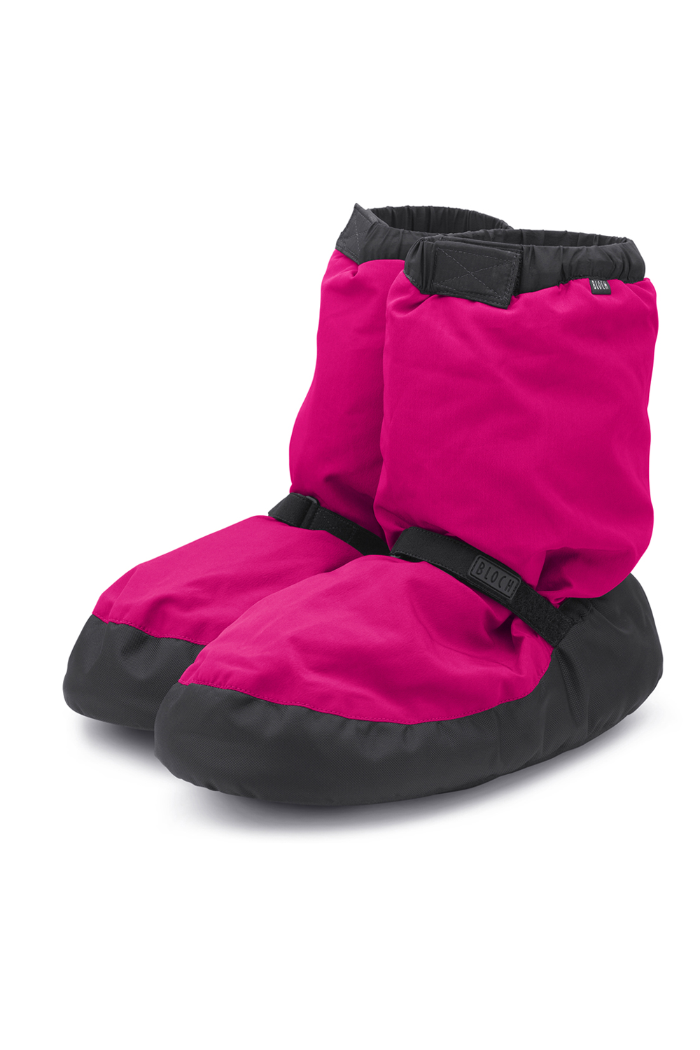 The IM009 adults or children's warm-up booties from Bloch. These unisex booties feature a soft, cushioned heel for luxurious comfort, and have Nylon mudguards. Designed by the American Ballet Theatre's principal dancers Irina Dvorovenk and Max Beloserkovsky, they are made with Polyester to ensure they retain as much heat as possible.