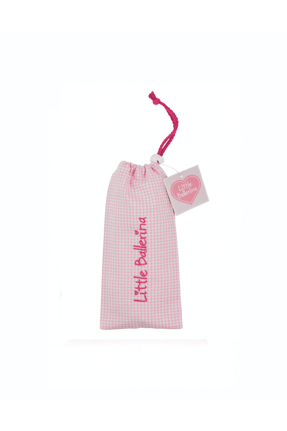 The SB002 shoe bag from Little Ballerina. This fabulous shoe bag in pink gingham is ideal for transporting and protecting your ballet shoes. With an embroidered logo and made from 100% Cotton, this is the perfect gift for your little ballerinas.